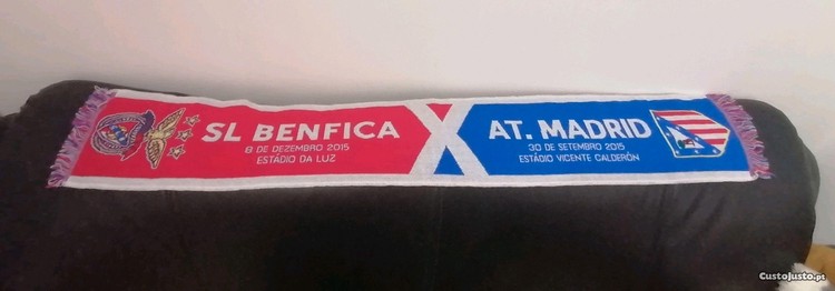 Cachecol do clube futebol do jogo Sport Lisboa e Benfica com o Atlético de Madrid Liga dos Campeões