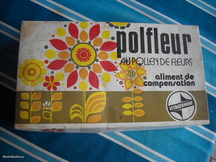 Caixa antiga vintage suplemento polen Polfleur com frascos