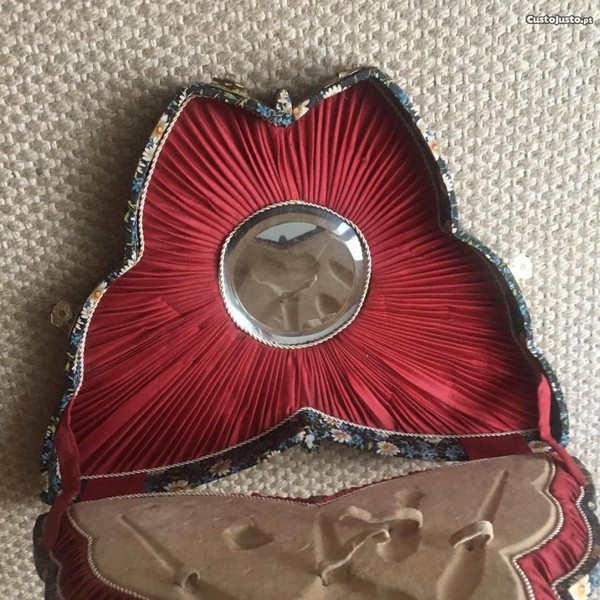 Caixa de costura vazia em forma de borboleta,dos anos 40 em perfeitas condições,com 4 fechos laterais,todos funcionais e espelho redondo no centro.