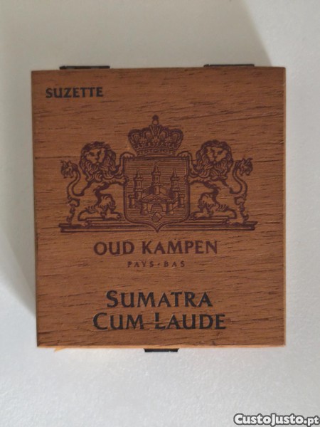 Caixa de madeira de charutos (Oud Kampen) em bom estado de conservação. Peça vintage com design característico da marca Holandesa. Ideal para colecionadores ou para guardar cigarros ou outros pequenos objetos. Entrego em mãos em Lisboa, Sacavém, São João da Talha, Ericeira ou Mafra. Custos de envio a cargo do comprador.