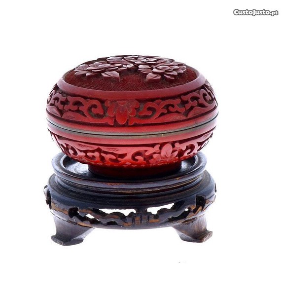 Preço: 130 €Caixa em laca chinesa Cinábrio c/ oferta de base de madeira entalhada