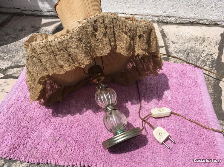 Preço: 45 €Candeeiro com abajour de renda e seda,Vintage