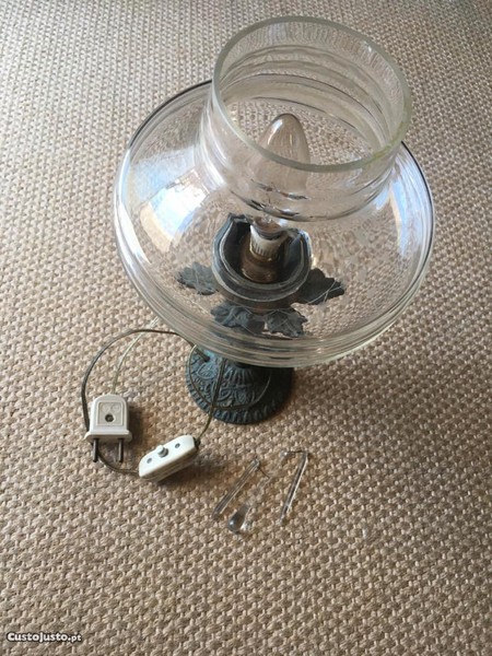 Preço: 15 €Candeeiro em cobre e latão,com abajour em vidro antigo