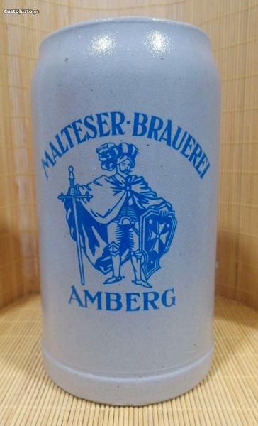 Preço: 17 €Caneca de cerveja em grés da marca Malteser-Brauerei Amberg, sendo aferida com capacidade de 1 L