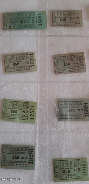 Capicuas bilhetes antigos dos transportes públicos, para completar coleção, conforme as fotos, cada 2 EUR, o minimo que vendo 5 bilhetes entrego em mão, envio pelo correio.