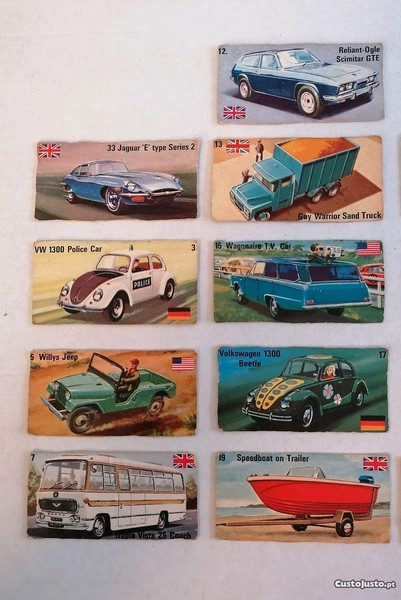 Cartões numerados muito antigos dos anos 60/70 de diferentes viaturas, barcos etc.