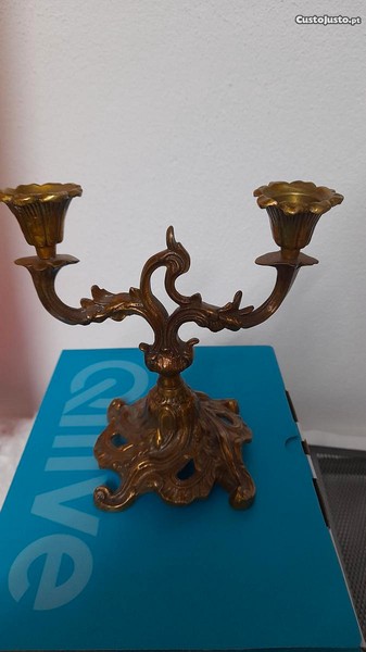 Vendo castiçal para velas em metal dourado. Excelente estado. Altura 17 cms