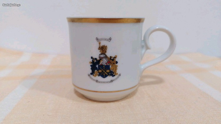 Preço: 7 €Chávena café com brasão do Instituto dos Altos Estudos Militares, em porcelana da fábrica SPAL