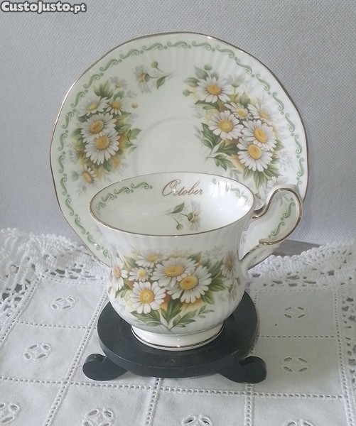Chávena de chá com pires em porcelana inglesa Queen's