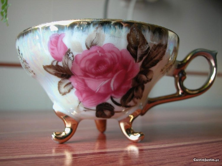 Preço: 15 €Chávena decorada com rosas e dourado c 12,5x6,5cm