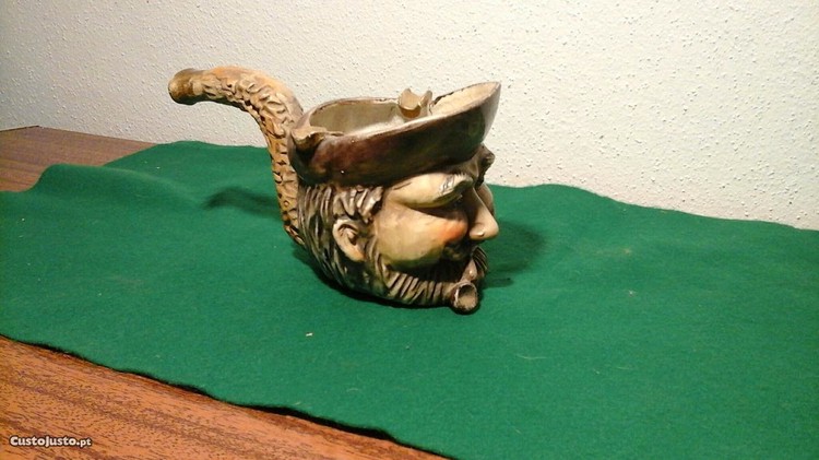 Cinzeiro muito antigo original em loiça pintado à mão, em forma de Cachimbo e com cara de marinheiro na parte frontal peça muito bem concebida e em estado otimo cerâmica de Bordallo Pinheiro.