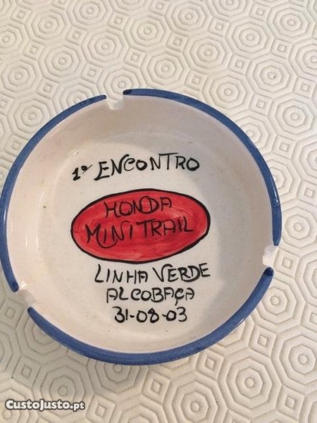 Cinzeiro troféu em louça alusivo ao 1 Encontro de Mini Hondas Linha Verde / Alcobaça de 03-08-2003.Pintado à mão.