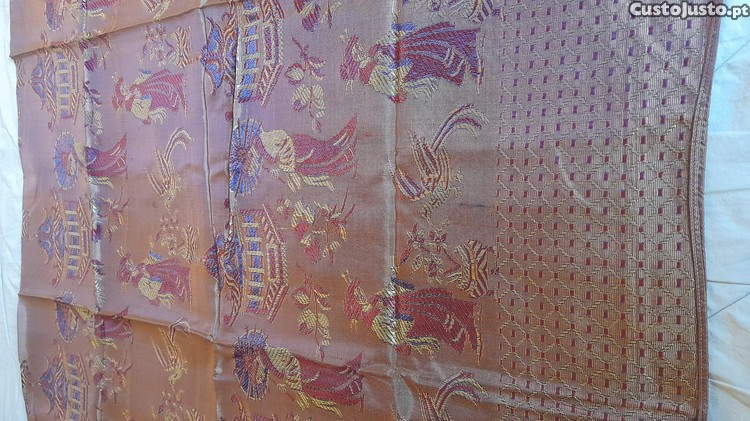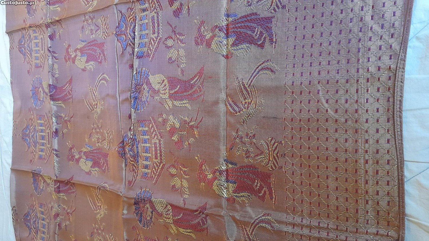 Colcha de seda muito antiga de cor castanha mas com nuances conforme a incidência da luz