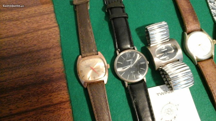 Coleção de 14 relógios antigos, modernos de homem e senhora, todos a 5 excepto o número 1 que é um Cauny 17 rubis com gravação e número de série de corda e com 60 anos a funcionar impecavelmente este jà não tenho, O número 13 de senhora a 22 e o número 14 de senhora a 18 .Alguma duvida ou marca sobre os mesmos é só perguntar.o número 1 o Cauny já vendi.
