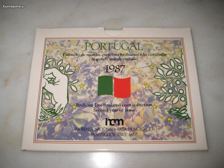 Vendo coleção de moedas correntes brilhantes não circuladas, PORTUGAL 1987 (2 ano de emissão), em embalagem original da Imprensa Nacional Casa da Moeda (em perfeito estado de conservação).