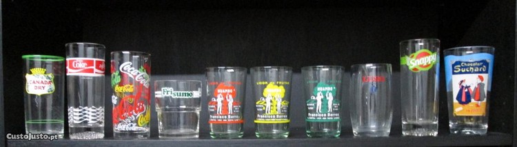 Vendo colecção de 10 copos antigos de marcas em Bom Estado.