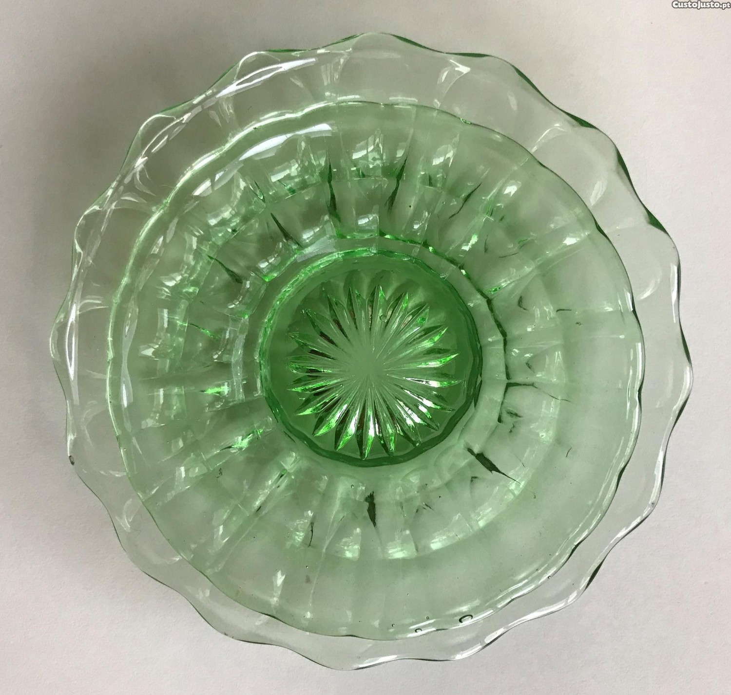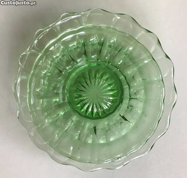 Preço: 25 €Conj. dois pratinhos em vidro verde prensado Marinha Grande Séc XIX/XX