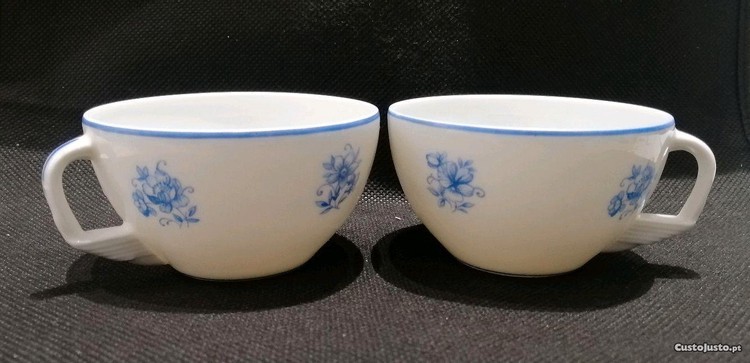 Preço: 7 €Conjunto 2 lindíssimas chávenas chá com singela decoração floral em azul em loiça Sp Coimbra