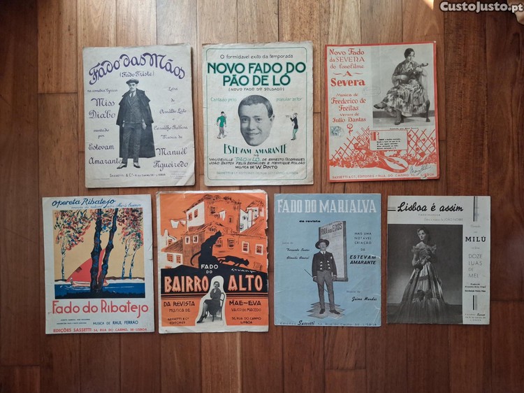 Vendo 7 partituras para piano, antigas (1940/1945), com músicas de Fado.