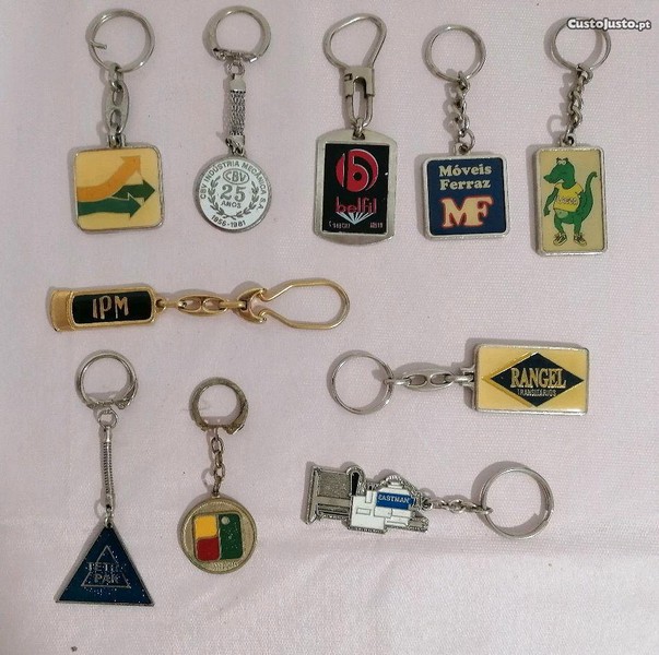 Preço: 10 €Conjunto de 10 diferentes porta chaves em metal (J)