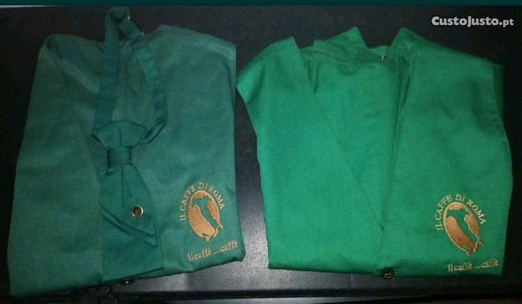 2 Coletes jaqueta e 1 gravata em tecido verde escuro e com o símbolo bordado dos cafés IL CAFFÉ Di ROMA il caffé...caffé.