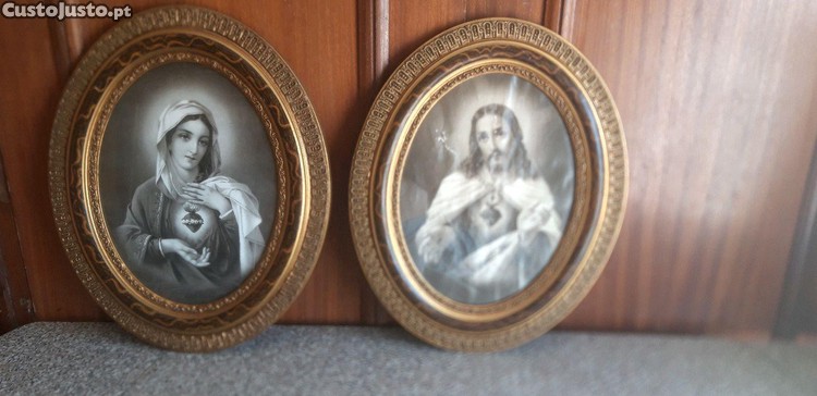 Preço: 70 €Conjunto de 2 Quadros Antigos Sagrado Coração