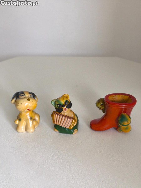 Conjunto de 3 apara lápis com cerca de 30 anos, em excelente estado, inclusivamente, um deles, possui ainda o apara lápis original. São ideais para colecionadores, sendo que o preço anunciado é por cada peça. Entrego em mãos em Lisboa, Sacavém, São João da Talha, Ericeira ou Mafra. Custos de envio a cargo do comprador.