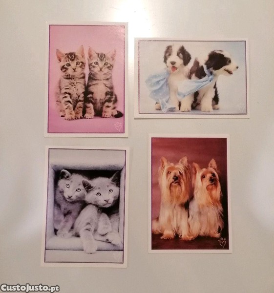 Conjunto de 4 cromos Meus Animais Divertidos, uma edição de 2009 da Panini.