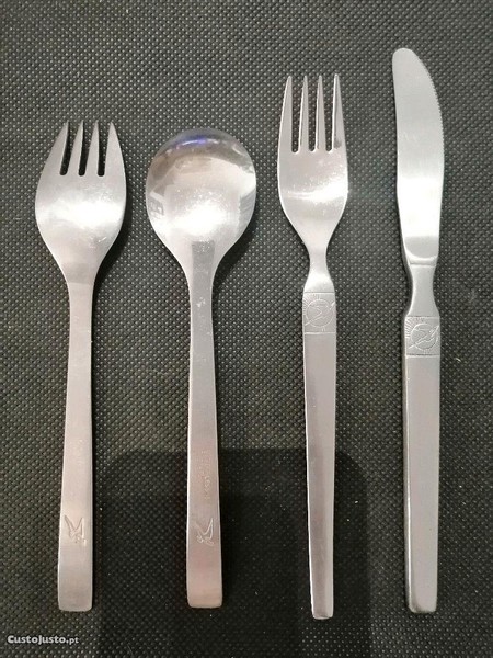 Preço: 8 €Conjunto de 4 talheres inox com a gravação da Companhia Aérea Sul Africana, South Africa Airways