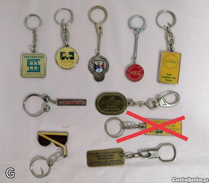 Preço: 10 €Conjunto de 9 diferentes porta chaves em metal (G)