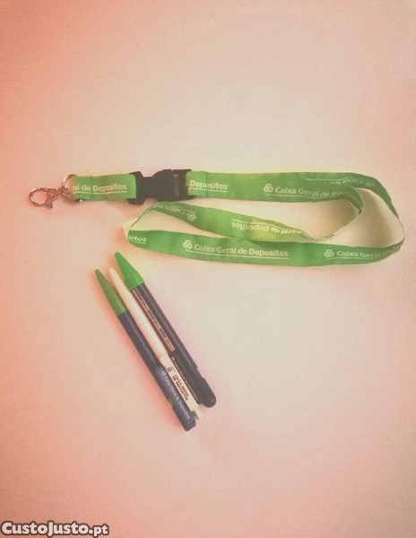 Preço: 10 €Conjunto de fita para pescoço e 3 esferográficas da CGD Caixa Geral de Depósitos