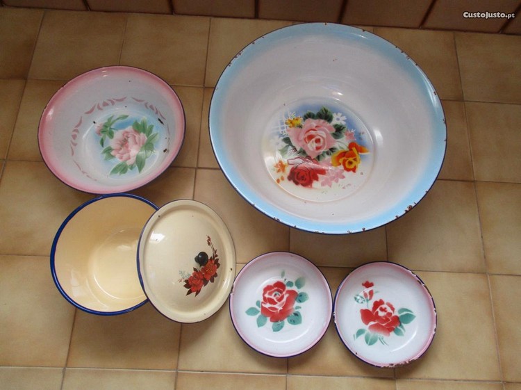 Preço: 20 €Conjunto em esmalte alguidares, pratos e taça