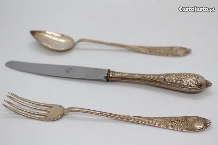 Marcas da prata nas peças só cabo da faca em inox, modelo e trabalho antigo e rico em excelente estado para antiguidade das peças