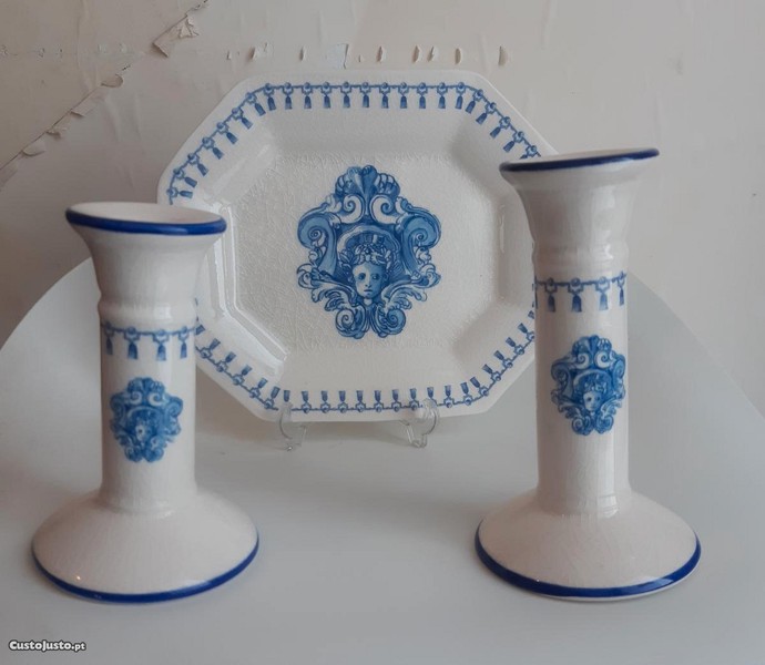 Maravilhoso Conjunto de Travessa e dois Castiçais