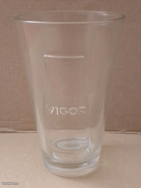 Copo antigo da famosa marca de leite Vigor. Peça muito interessante para coleccionadores e amantes de lembranças uma vez que tem o emblema da marca em relevo, pormenor raro na generalidade dos copos publicitários. Está estimado. Barato para desocupar. Negociável, vendo pela melhor oferta.