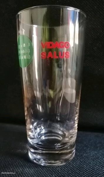 Copo antigo em vidro com a publicidade das águas Vidago Salus.