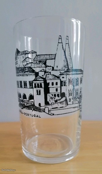 Copo antigo em vidro com imagem do Palácio de Sintra - Portugal
