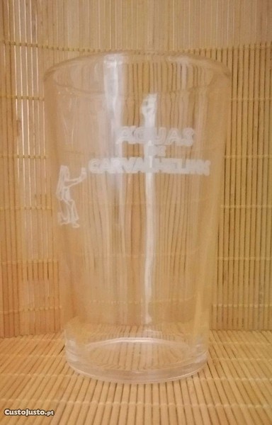 Preço: 7 €Copo antigo em vidro com publicidade das Águas de Carvalhelhos ( logotipo e rótulo a Branco )
