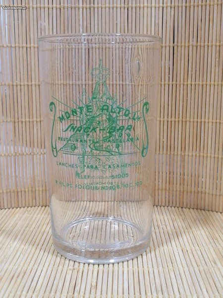 Copo antigo em vidro com publicidade ao Monte Alto, Snack-Bar, Restaurante, Pastelaria, Av. Filipe Folque, Lisboa.