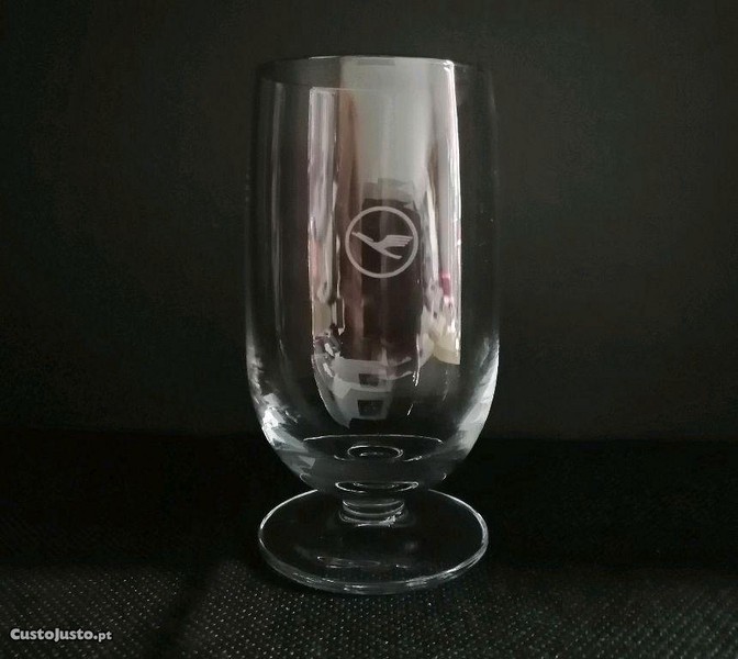 Copo em vidro com a gravação do símbolo da Companhia Aérea Alemã, Lufthansa