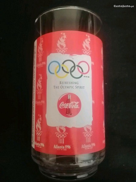 Copo vidro edição aos jogos Olímpicos Atlanta em 1996 com lançamento Mac Donalds menção Coca Cola