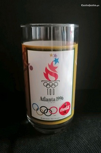 Preço: 6 €Copo vidro edição Mac Donalds e menção à Coca Cola com referência jogos Olímpicos 1996 em Atlanta