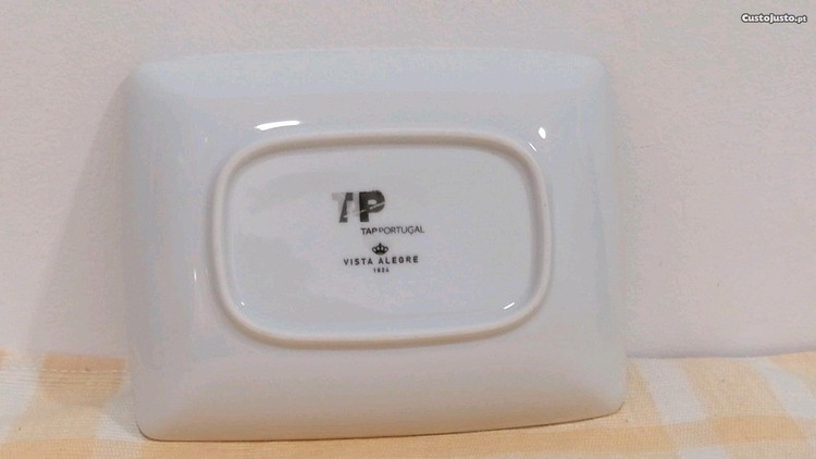 Covilhete em loiça com publicidade da Companhia Aérea Portuguesa, TAP, sendo em porcelana da fábrica Vista Alegre.