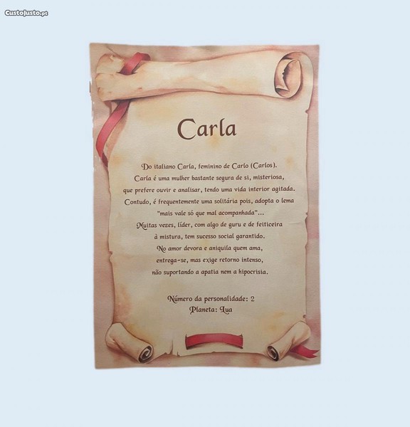 Preço: 2 €Diploma A4 com Significado nome Carla