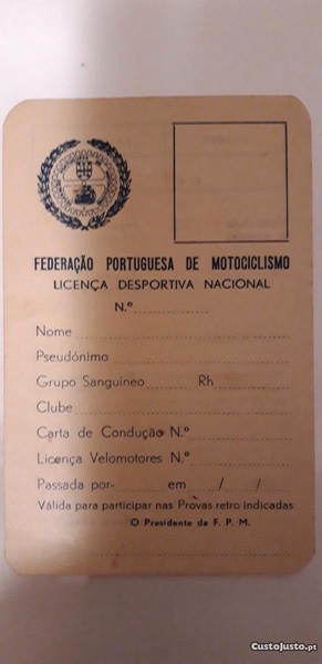 Documentos antigos de Motociclismo, cartão, impresso de Licensa desportiva Nacional da F.P.Motociclismo, cartão corrida de homenagem a Antonio Martin Martinez, Sevilla, entrego em mão, envio pelo correio, cada 15 EUR