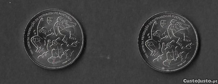 Dus moedas de 6EUR. Portugal 2024. 100 anos da Federação de Patinagem de Portugal. Cupro-níquel, diam. 30mm e peso 14gr.