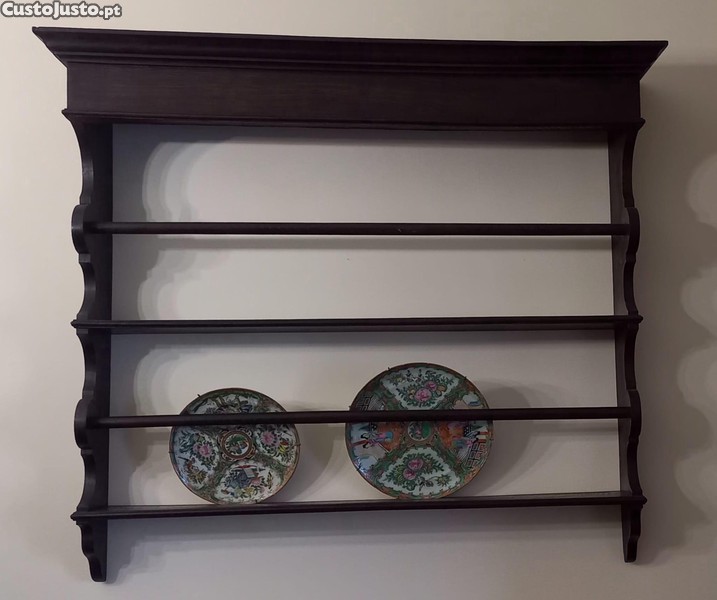 Talhado à mão, tem duas fileiras e sulcos para travar pratos, travessas e saladeiras. Bom estado de conservação. Altura 86 cm, comprimento 100 cm e largura 21,5 cm.