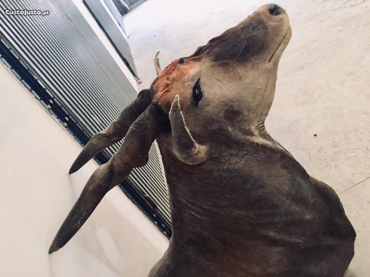 Exemplar perfeito desta sub-espécie, cuja avançada idade tornou o pelo de um cinzento azulado bem como tornou amarelado o tudo sob os cornos. Córnea grossa e desgastada com espirais bem marcadas. Corpo muito desenvolvido a ultrapassar uma tonelada. Taxidemeia de grande qualidade.