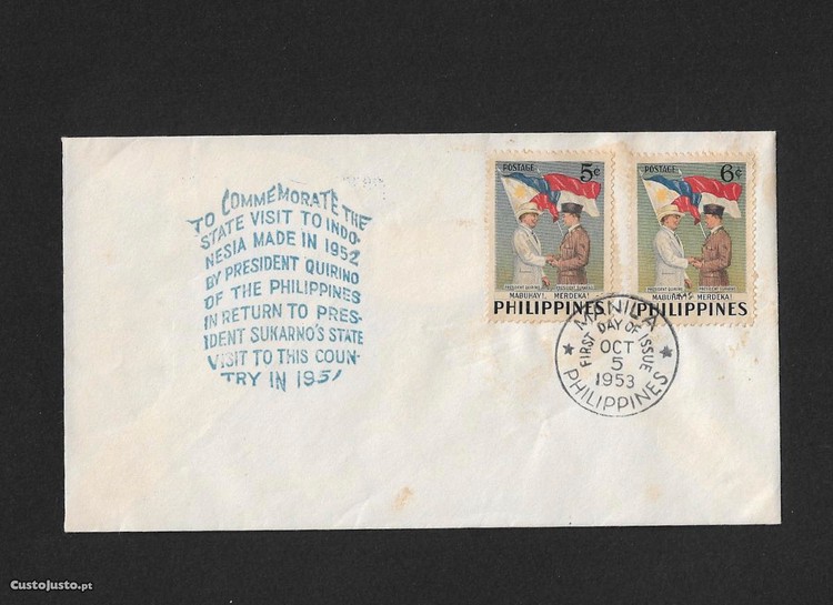 Envelope de circulação do 1 dia. Filipinas 1953. O envelope reproduzido será o enviado.