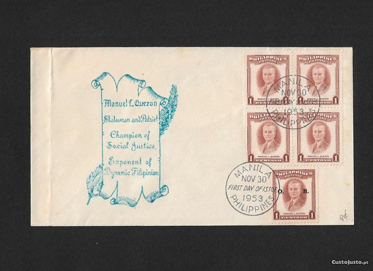 Envelope do 1 dia de circulação. Filipinas 1953. O envelope representado será o enviado.